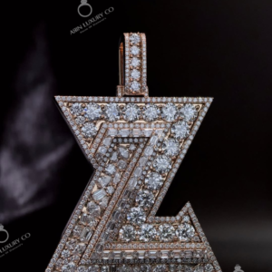 Luxury Hip Hop Z Alphabet Pendant Fully Iced Lab Diamond Look Charm in Rose Gold Tone Custom Initial Necklace for Men And Gift For Him