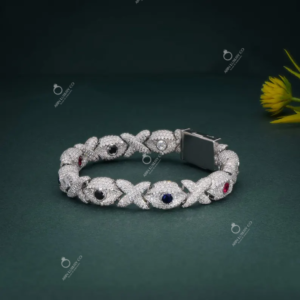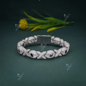 Hip Hop Iced Out Bracelet Featuring Fish Link Design with Colored Gemstones and Diamond Pave Setting Stylish Streetwear Jewelry And Gift For Her