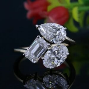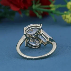 Pear Oval Emerald Cut Lab Grown Diamond Ring in Yellow Gold Trilogy Engagement Ring | Luxury Bridal Wedding Ring | Anniversary Gift For Her