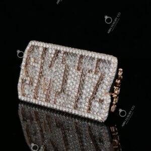 Custom Baguette Initial Ring SMITZ Iced Out Men’s Hip Hop Jewelry Rose Gold Finish Lab Diamond Pave Statement Ring for Rappers and Streetwear