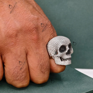 Men’s Iced Out Skull Ring White Gold Finish Lab Diamond Hip Hop Jewelry Biker Pinky Ring Goth Statement Piece for Men and Women