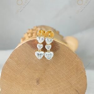 Heart Cut Lab Grown Diamond Drop Earrings in Yellow Gold Triple Heart Dangle Stud Earrings Bridal Wedding Anniversary Gift Minimal Luxury Fine Jewelry