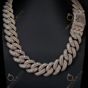 Iced Out Cuban Link Chain in Rose Gold with Full Diamond Pave Setting Premium Hip Hop Necklace for Men Luxury Statement Piece