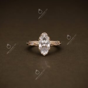 Unique Style Lab-Created Ring With Three-Stone & Halo Setting In Emerald Shape Diamond