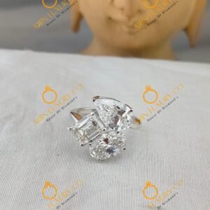 Emerald & Pear Cut Lab Grown Diamond 18Kt Gold & Lab Grown Diamond Vintage Ring