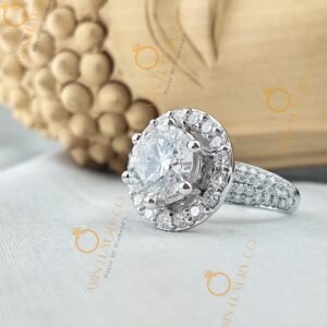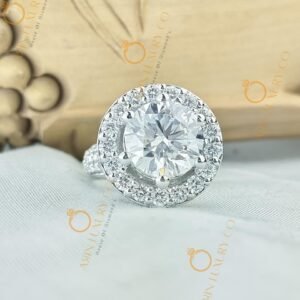 Luxury Round Cut Diamond Ring for Women In 10K 14K 18K Iced Out Micro Pave Halo Statement Wedding Band | High-End Bridal Fine Jewelry