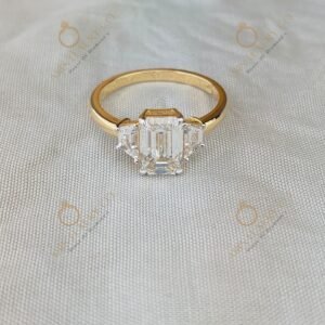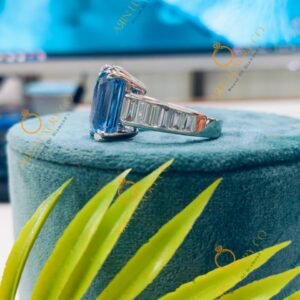 Blue Emerald Cut Diamond Ring in White Gold with Side Diamonds Prong Setting In 10K 14K 18K Luxury Engagement Ring for Women / Men Jewelry For Him
