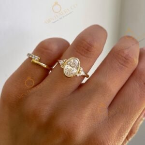 Solid Yellow Gold Lab Grown Oval Shape Diamond Ring & Bezal Setting Type For Women’s To Were In Engagement, Party ,Wedding, Gifts For Her