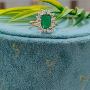 Unique Style Lab-Created Ring With Three-Stone & Halo Setting In Assher Shape Diamond