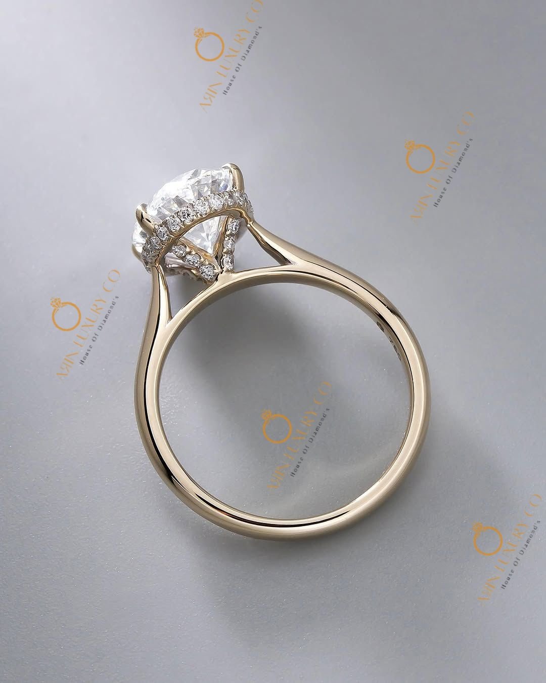 Classic Oval Cut Diamond Engagement Ring with Hidden Halo | 10K 14K 18K Yellow Gold Solitaire Ring | Timeless Bridal Jewelry for Her | Arin Luxury Co