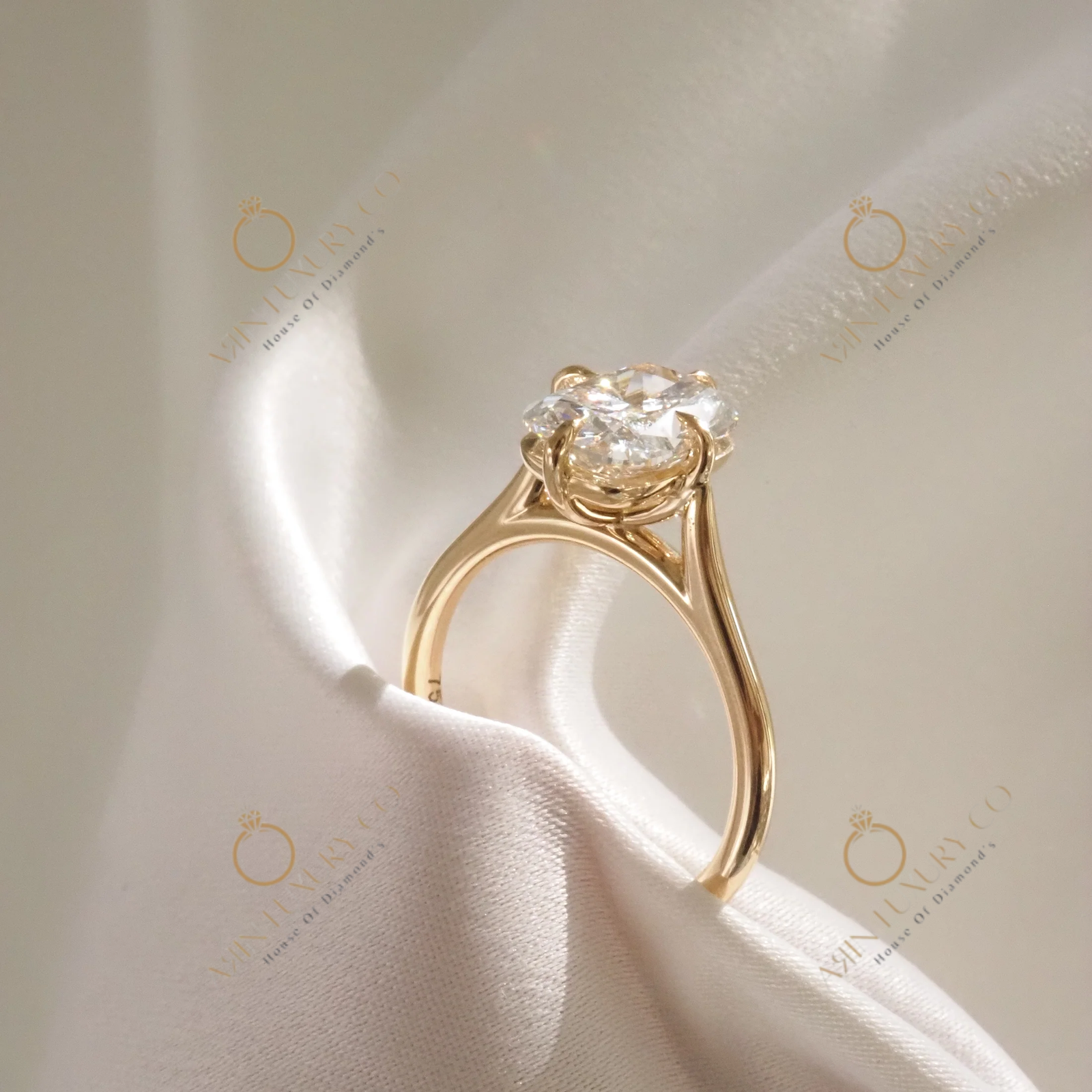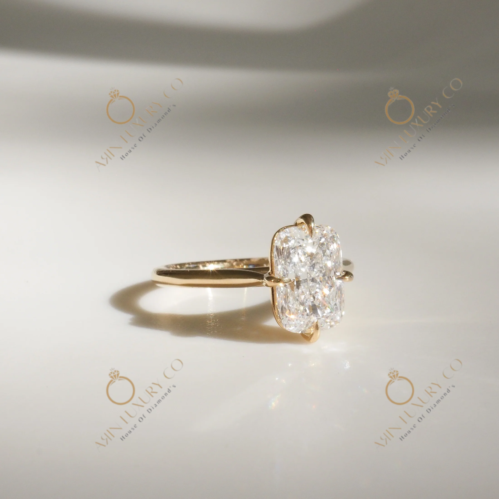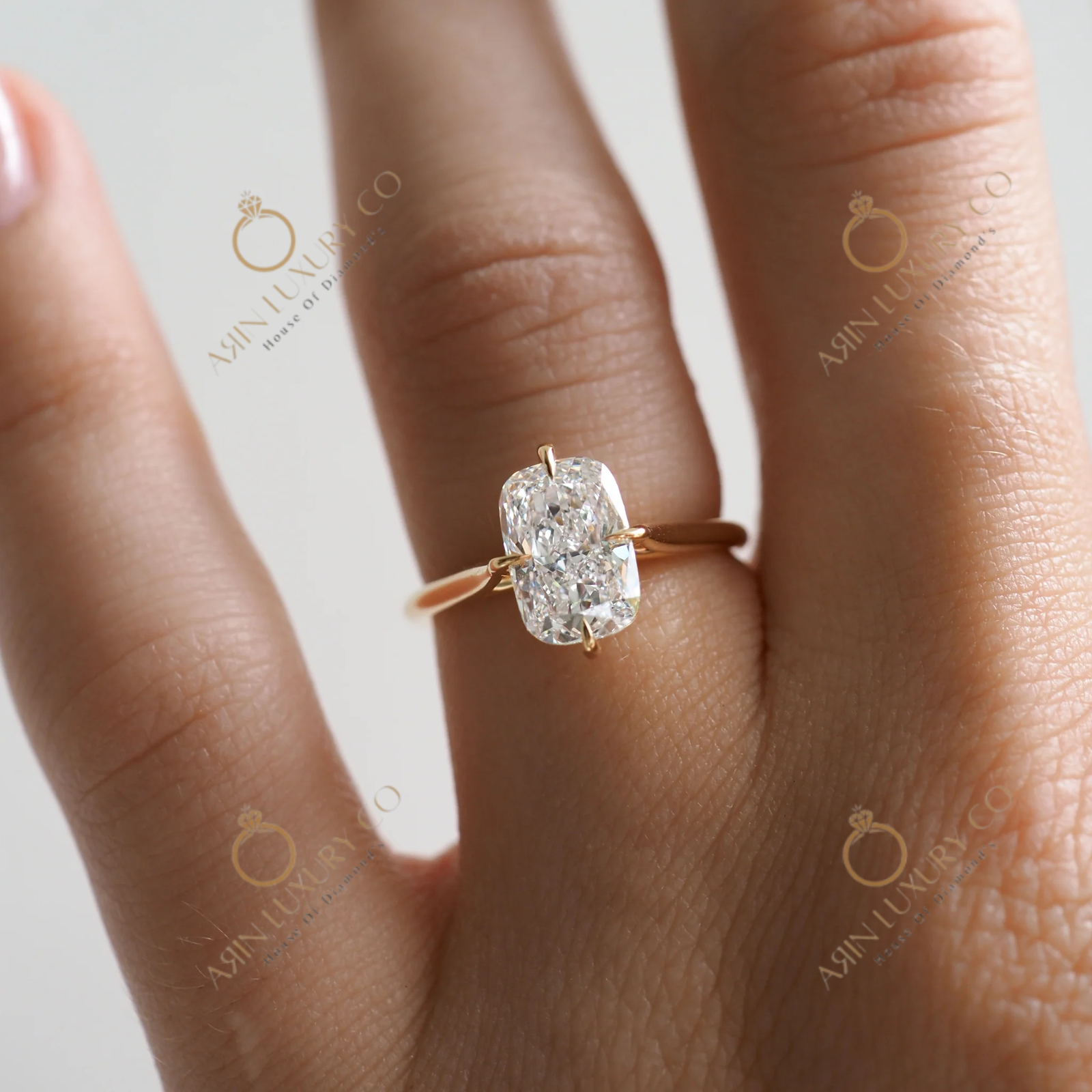 Cushion Cut Lab Grown Diamond Ring in Yellow Gold | Solitaire Engagement Ring | Classic Prong Setting Bridal Wedding Ring Anniversary Gift For HerFine Jewelry