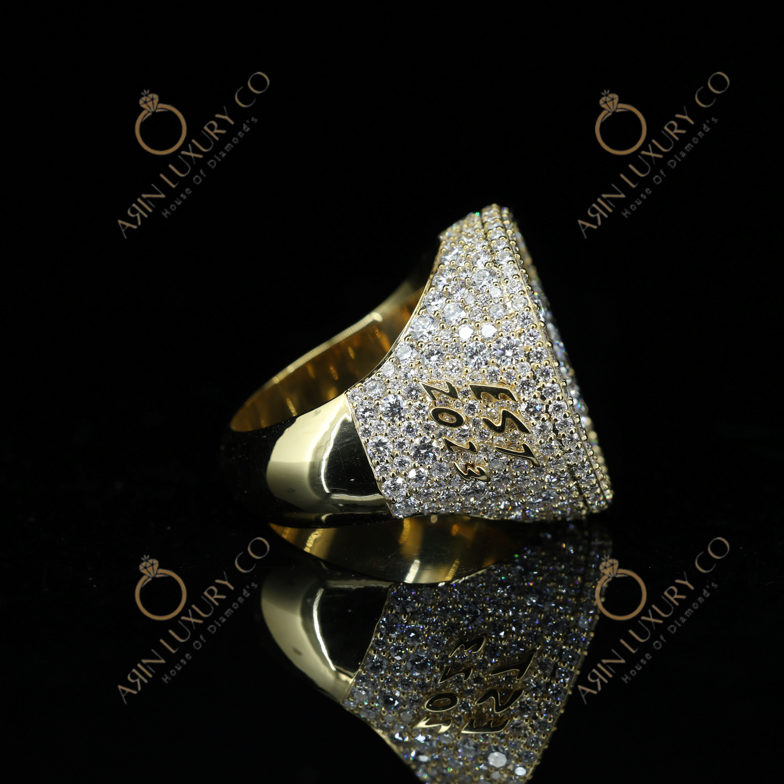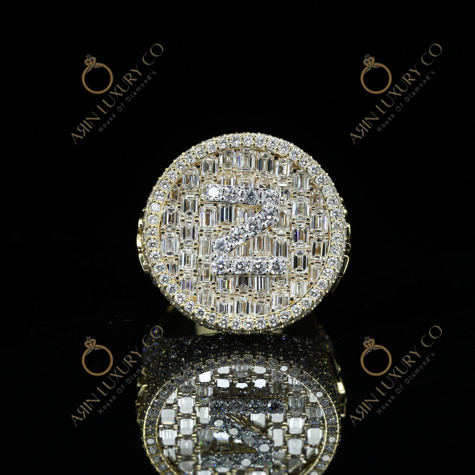 Custom Initial Z Round Cut & Emerald Diamond Ring in Yellow Gold | Iced Out Hip Hop Statement Ring | Luxury Men’s Jewelry Gift | Personalized Diamond Letter Ring