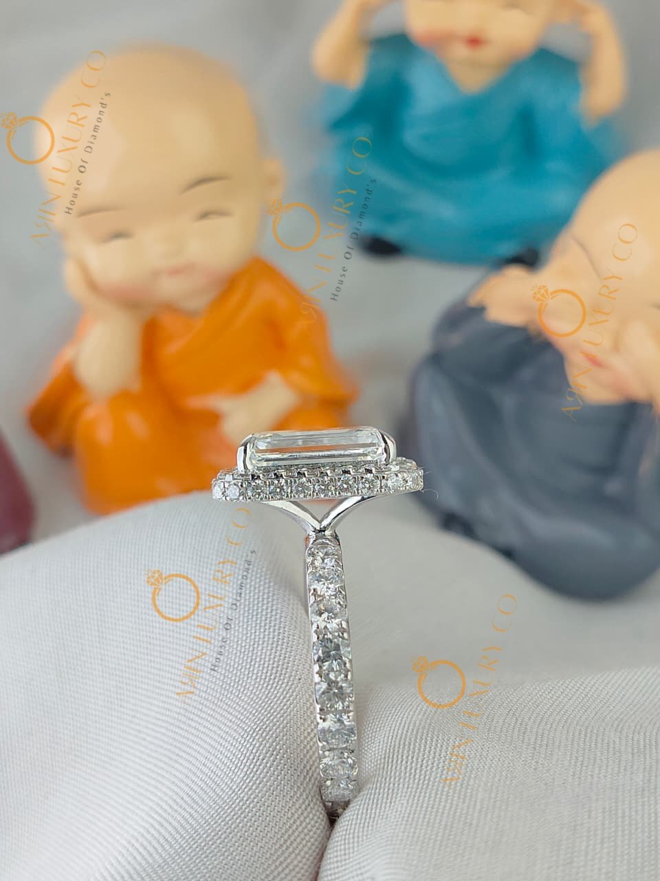 Be the first to review “Elegant Radiant Emerald Cut Ring with Double Micro Pave Halo In 10K 14K 18K | High-End Diamond Bridge Statement Ring | Bridal Fine Jewelry”