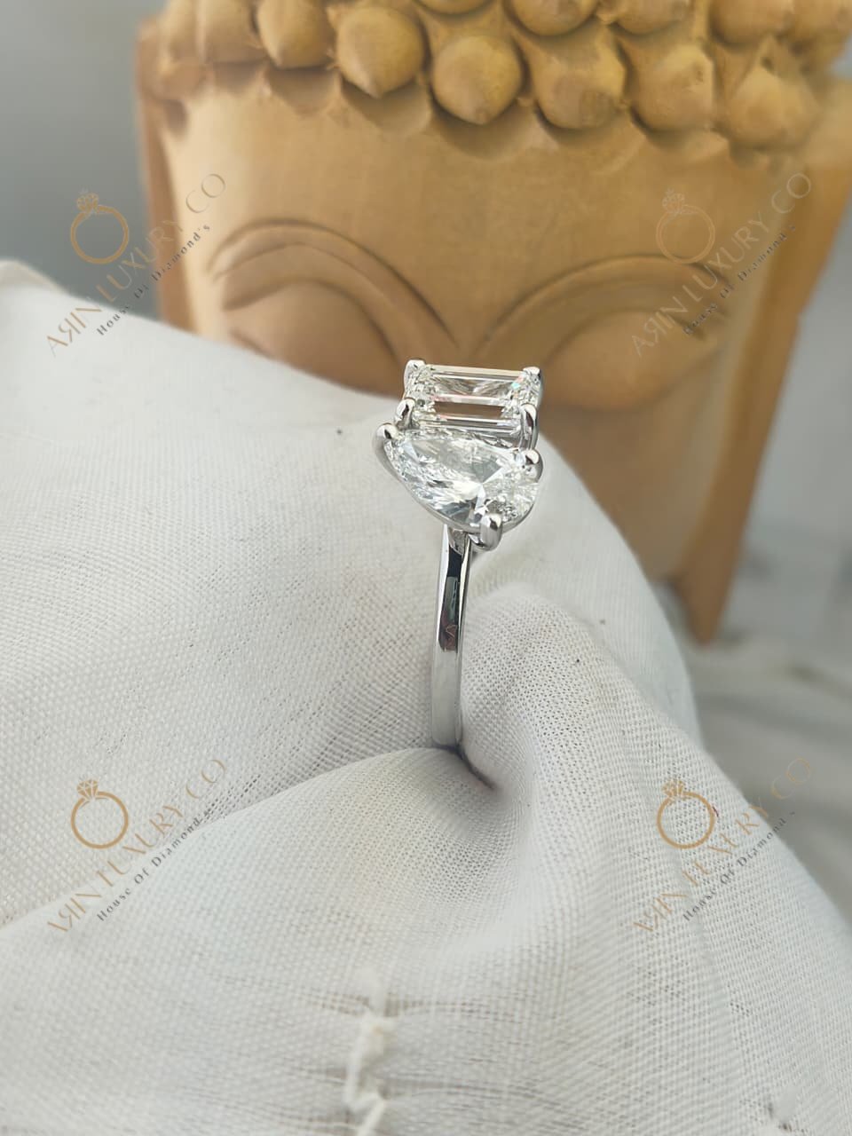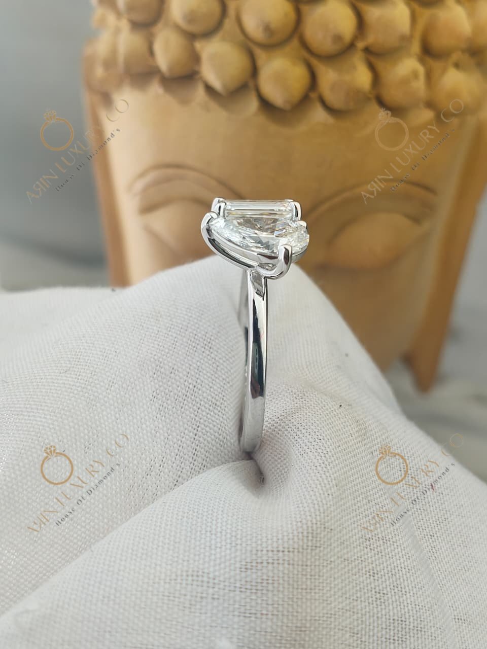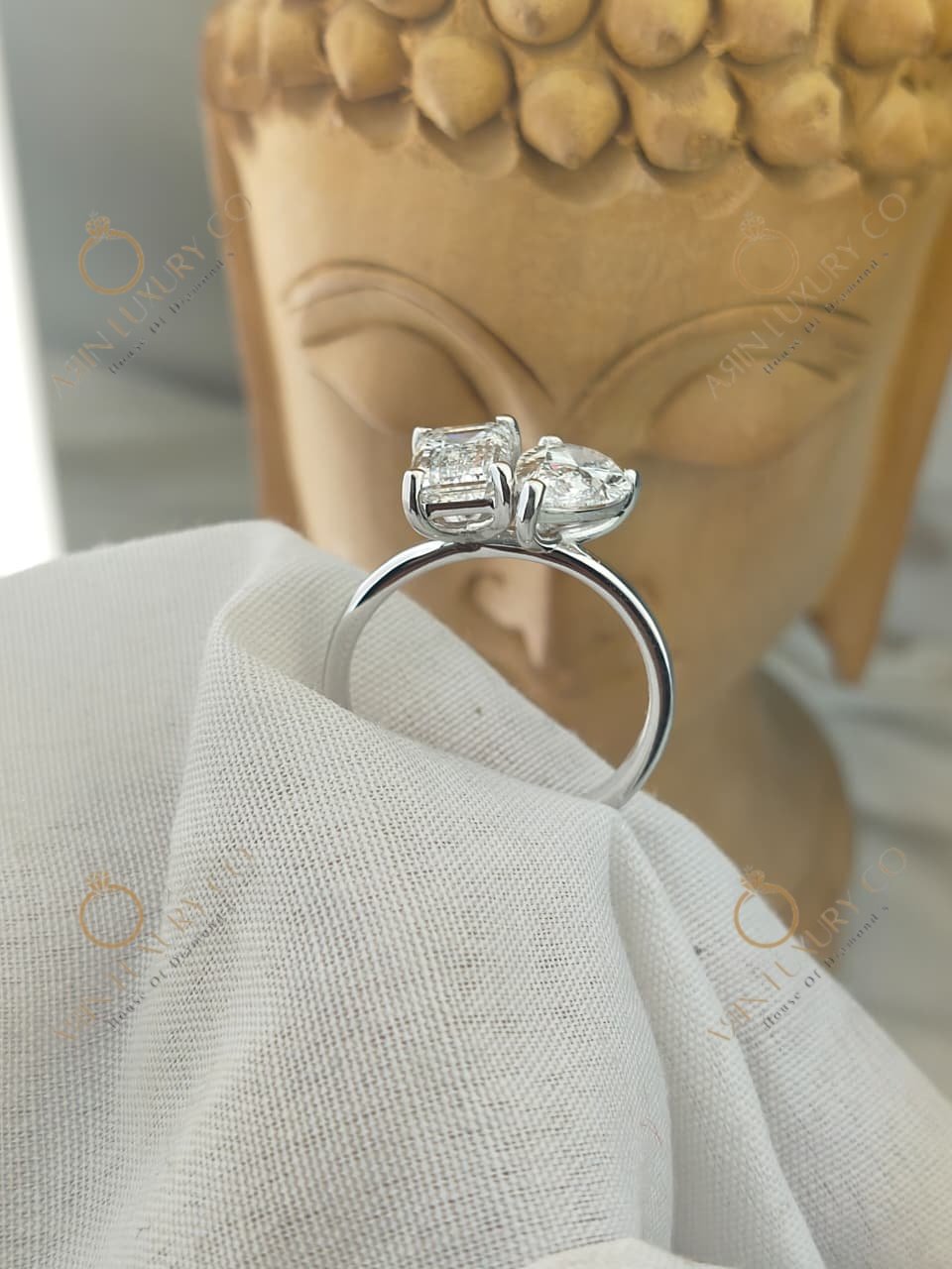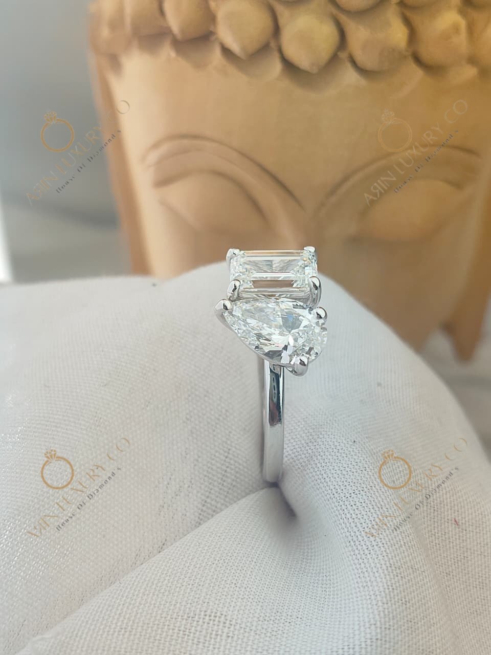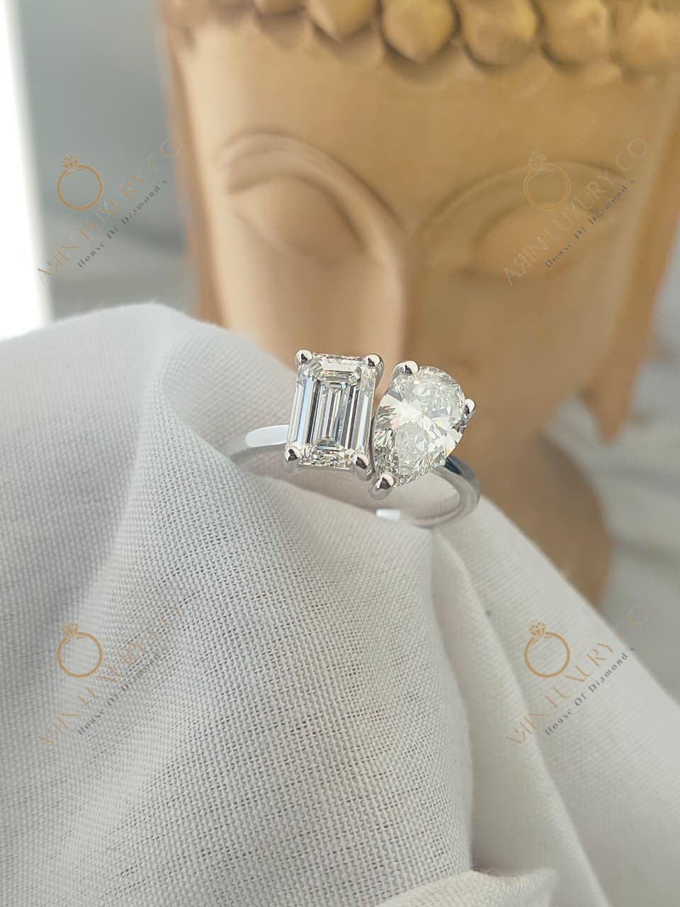 Emerald Cut and Pear Cut Diamond Toi et Moi Ring in White Gold Elegant Two Stone Ring Luxury Fine Jewelry for Women Wedding Engagement Gift