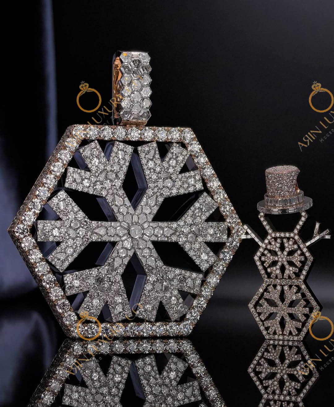 Iced Out Snowflake Pendant & Snowman Charm Set | Moissanite Diamond Hexagon Necklace | Hip Hop Winter Collection Jewelry | Custom Baguette Diamond Pendant | Unique Luxury Gift for Him