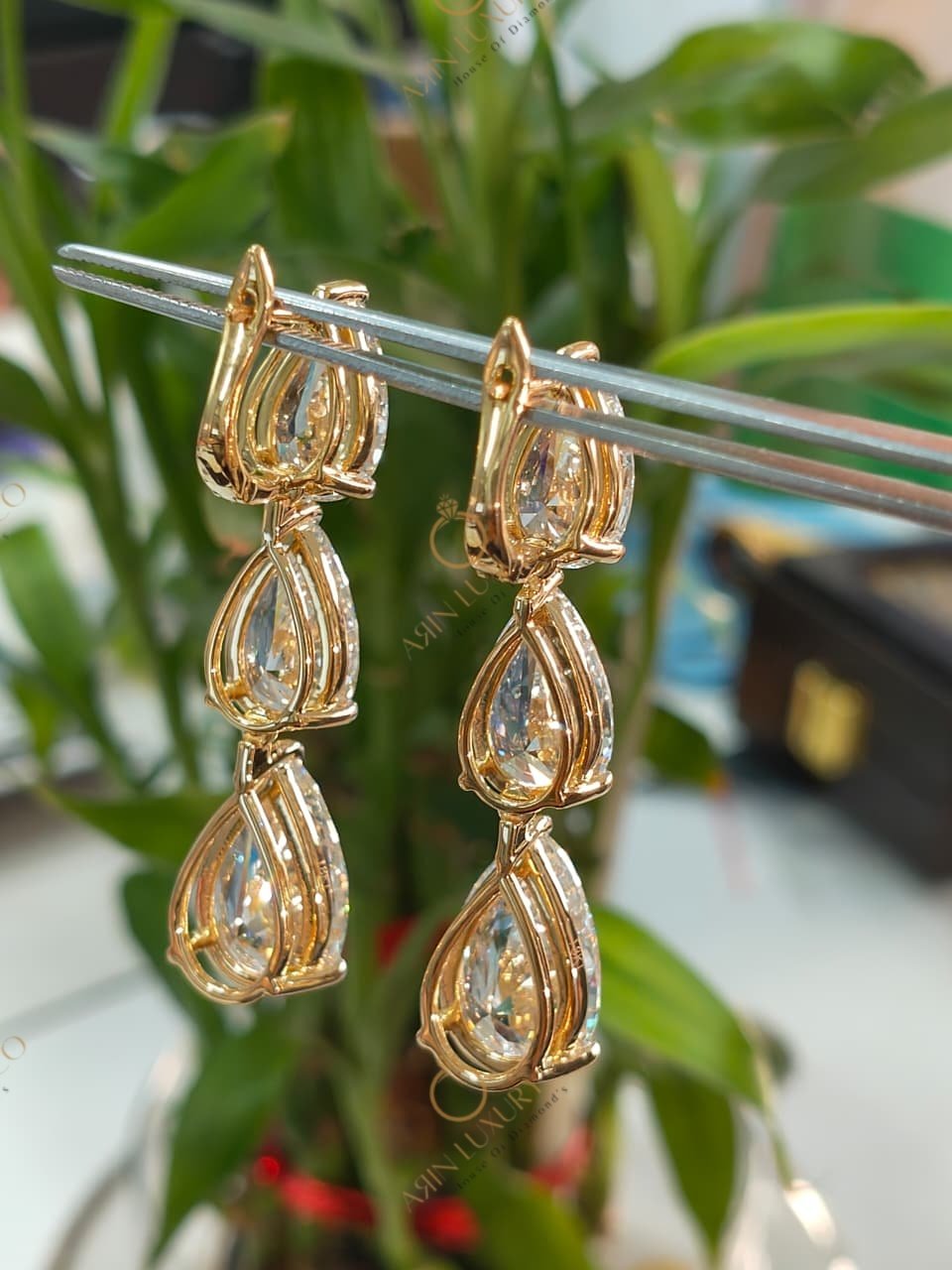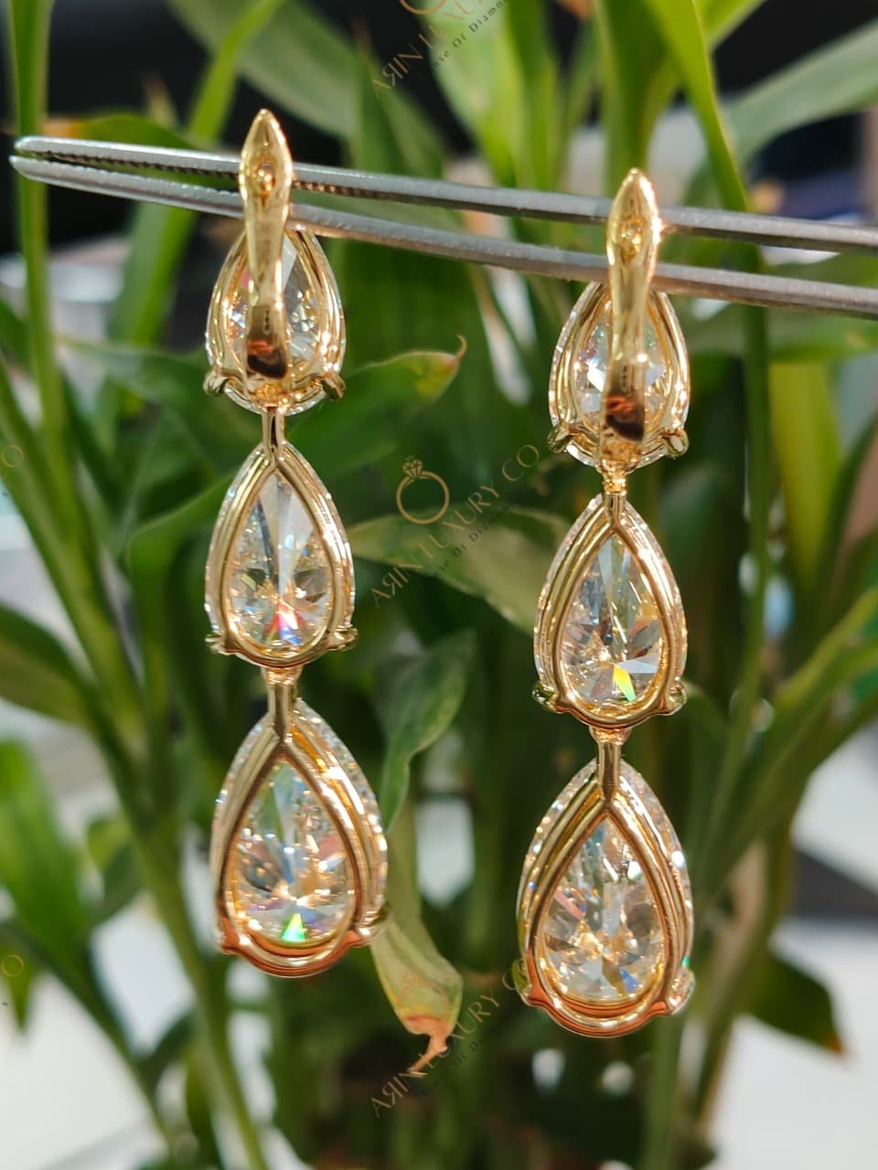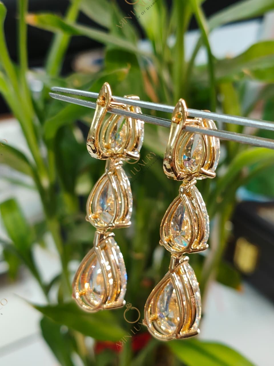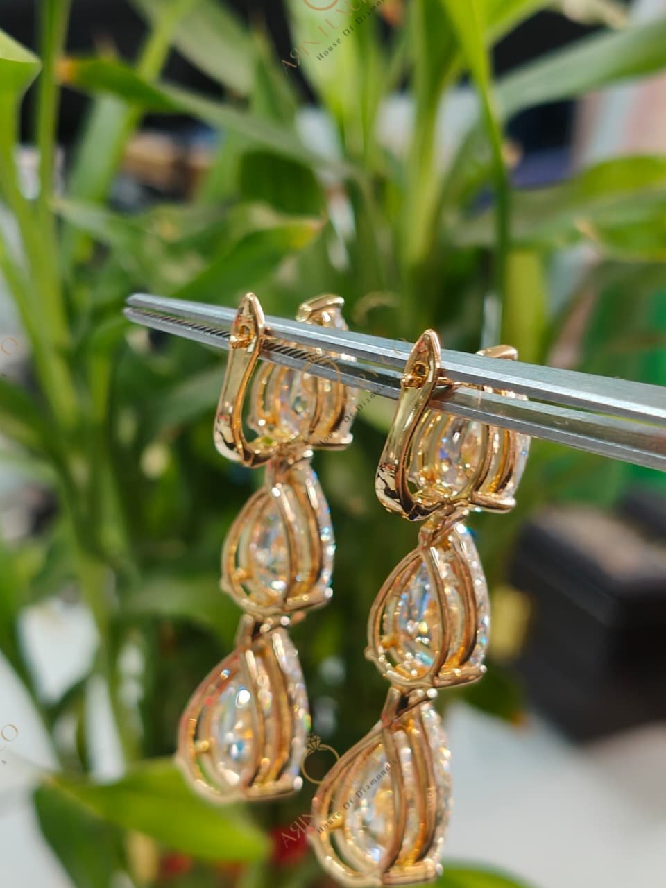 Luxury Pear Cut Diamond Earrings in Yellow Gold Elegant Pear Shape Diamond Stud Earrings for Women Fine Jewelry Gift for Anniversary