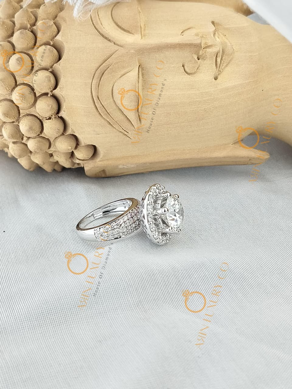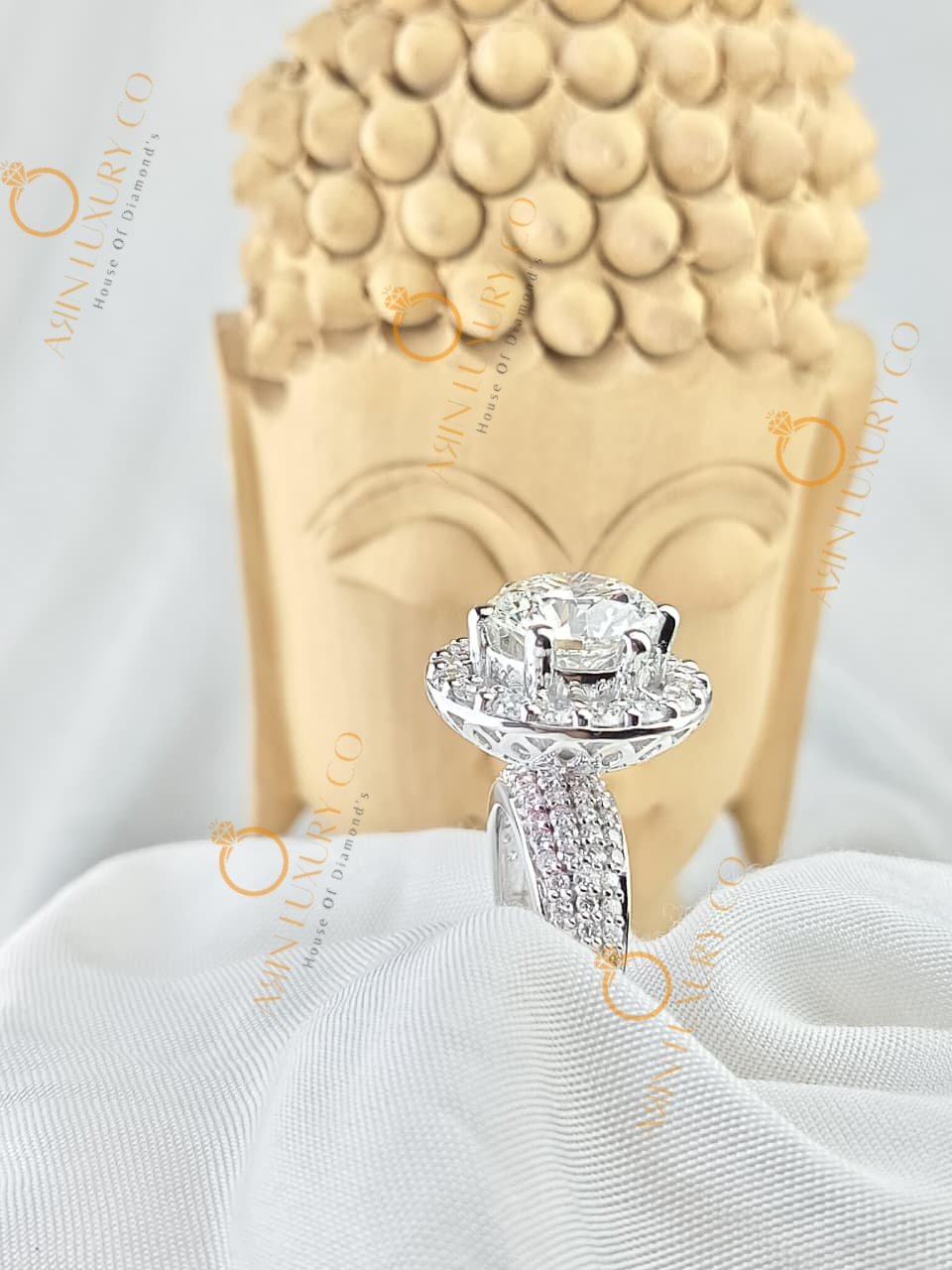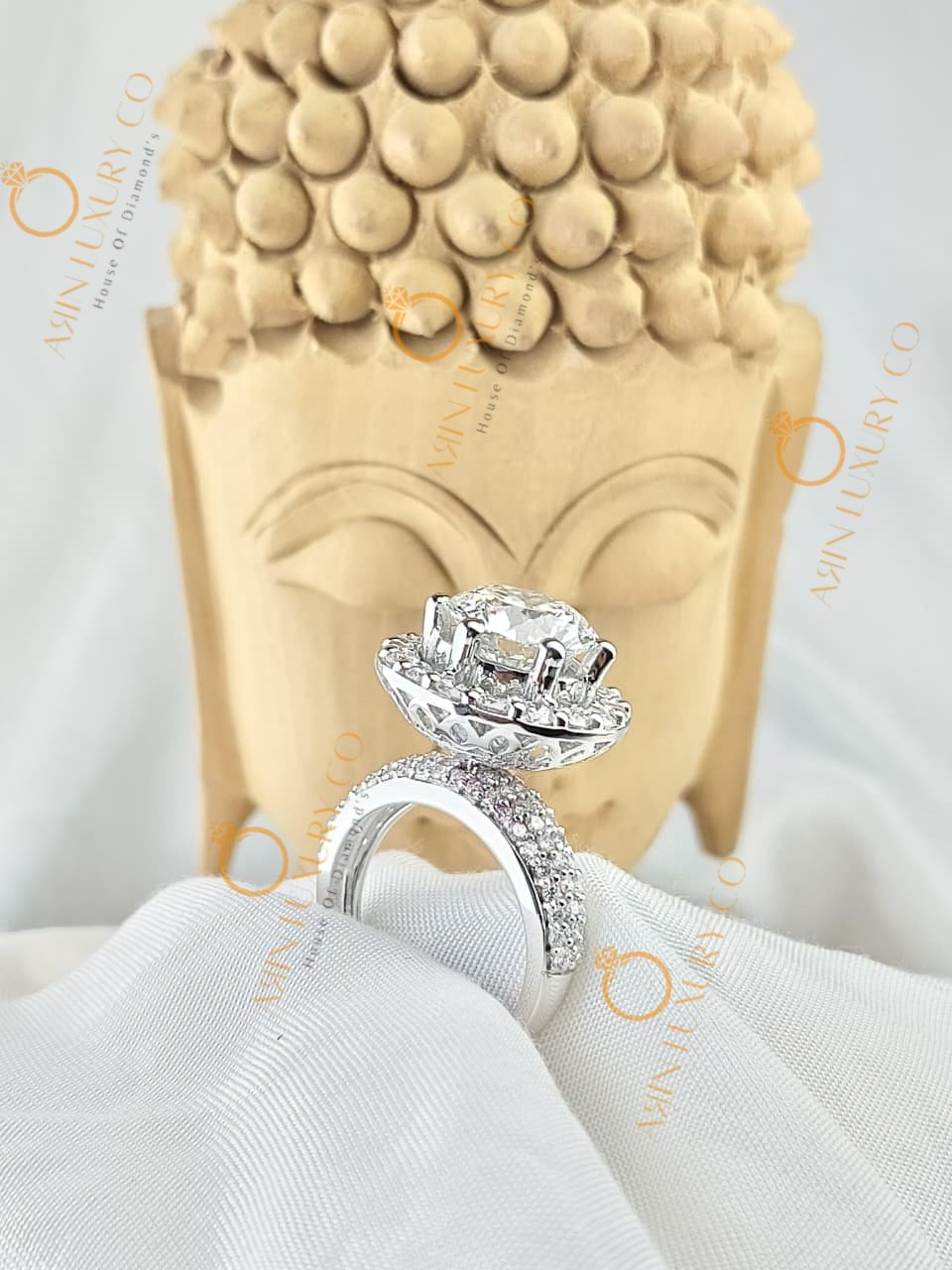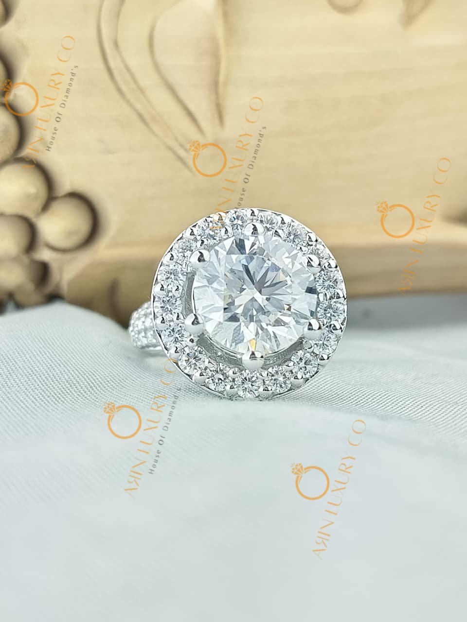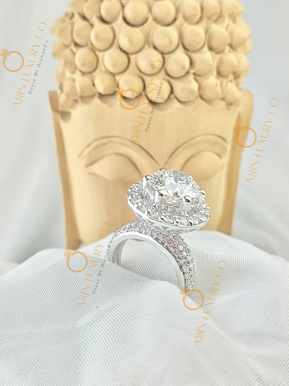 Be the first to review “Luxury Round Cut Diamond Ring for Women In 10K 14K 18K Iced Out Micro Pave Halo Statement Wedding Band | High-End Bridal Fine Jewelry”