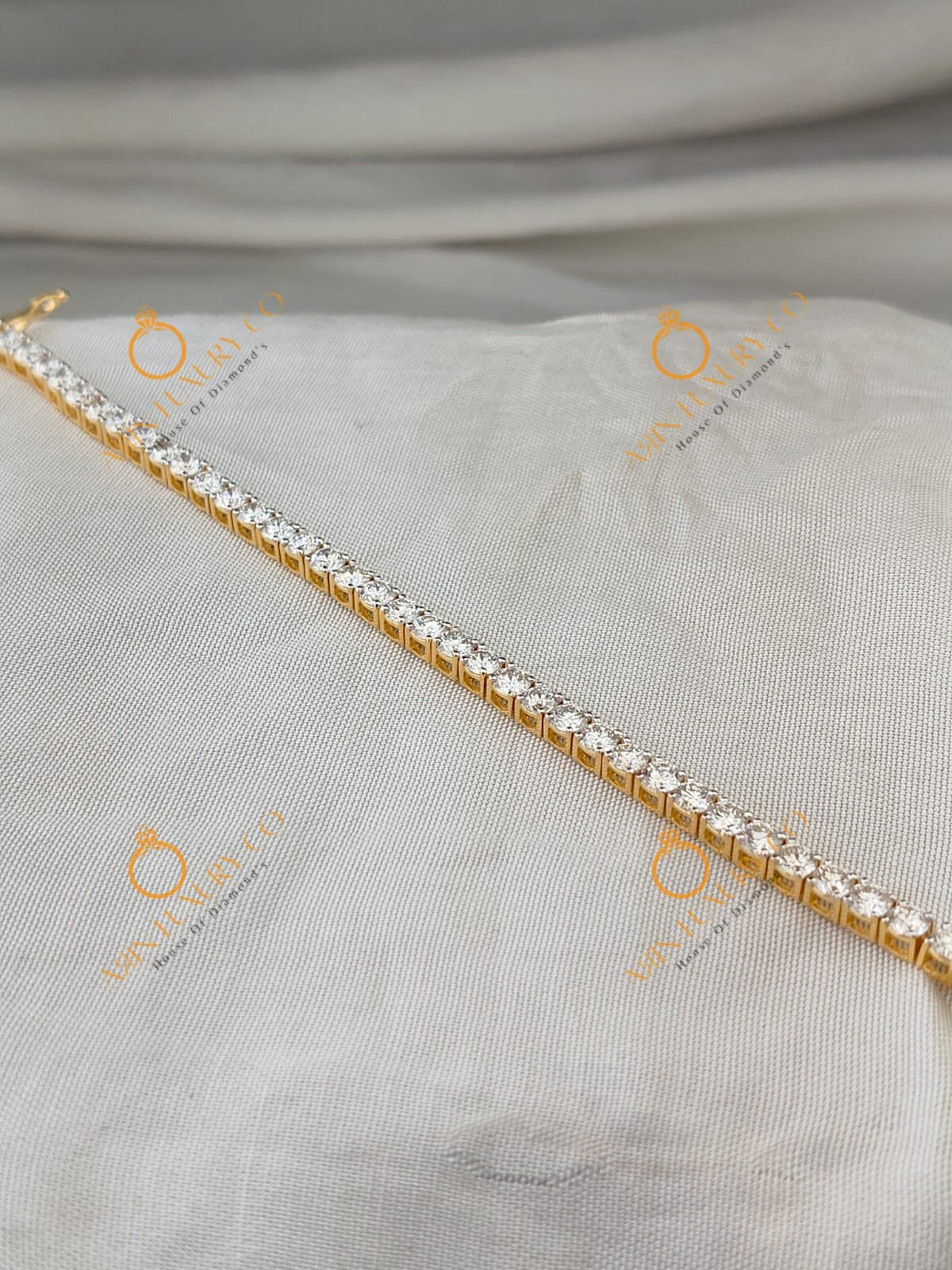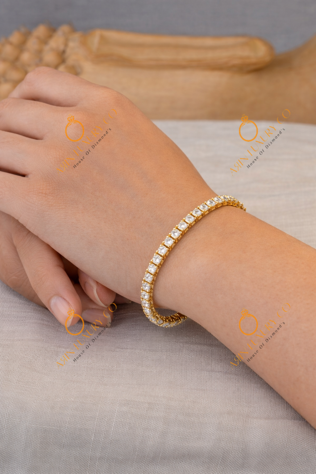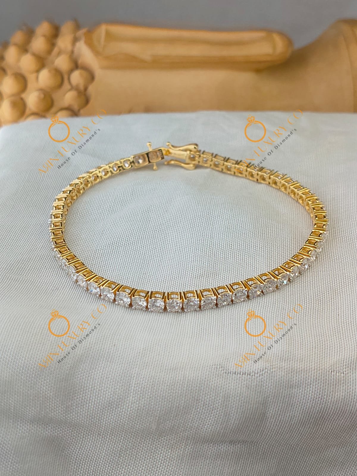 Luxury Round Diamond Tennis Bracelet in Yellow Gold for Women Elegant Classic Diamond Bracelet Fine Jewelry for Wedding Anniversary Engagement Gift for Her