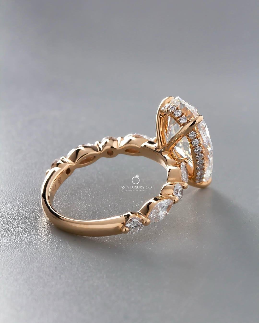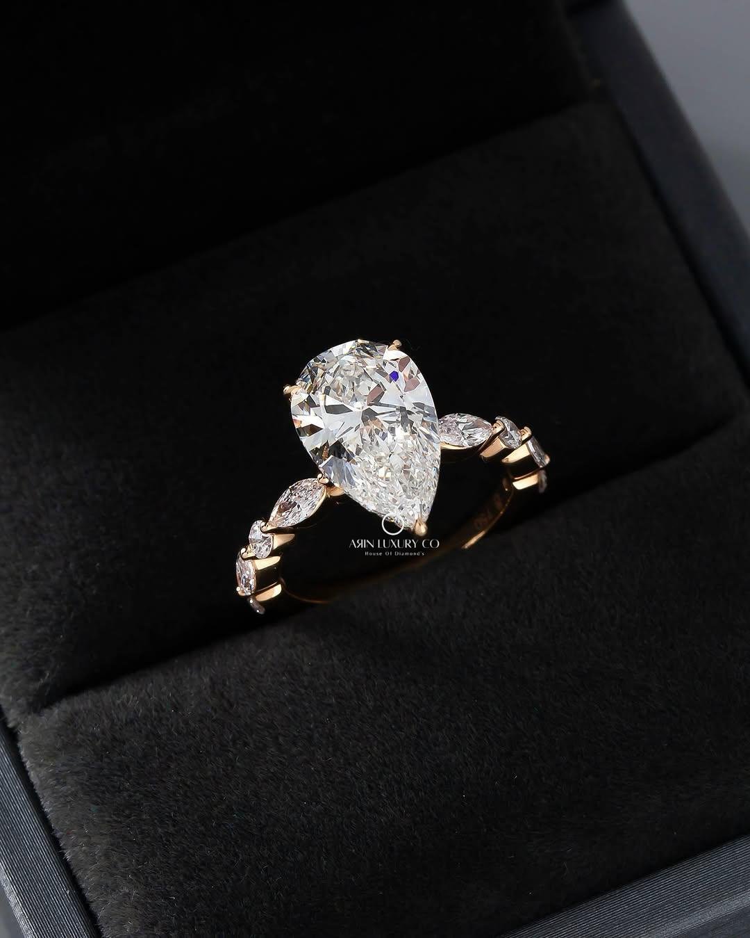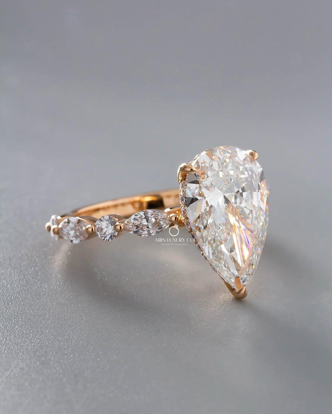 Be the first to review “Modern lab grown diamond ring crafted in 14Kt Rose gold with Pear cuts. Sustainable, elegant bridal jewelry.”