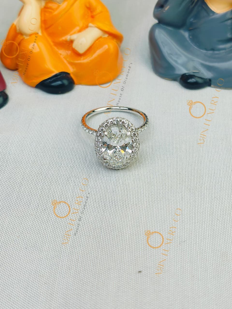 Oval Cut Diamond Engagement Ring with Halo In 10K 14K 18K | White Gold Thin Pave Wedding Band & For Engagement | Unique Anniversary Gift for Her