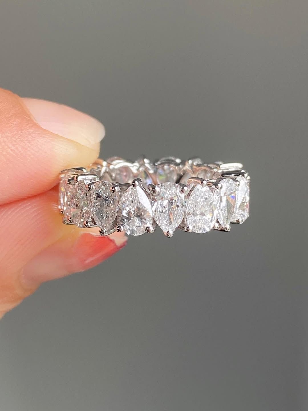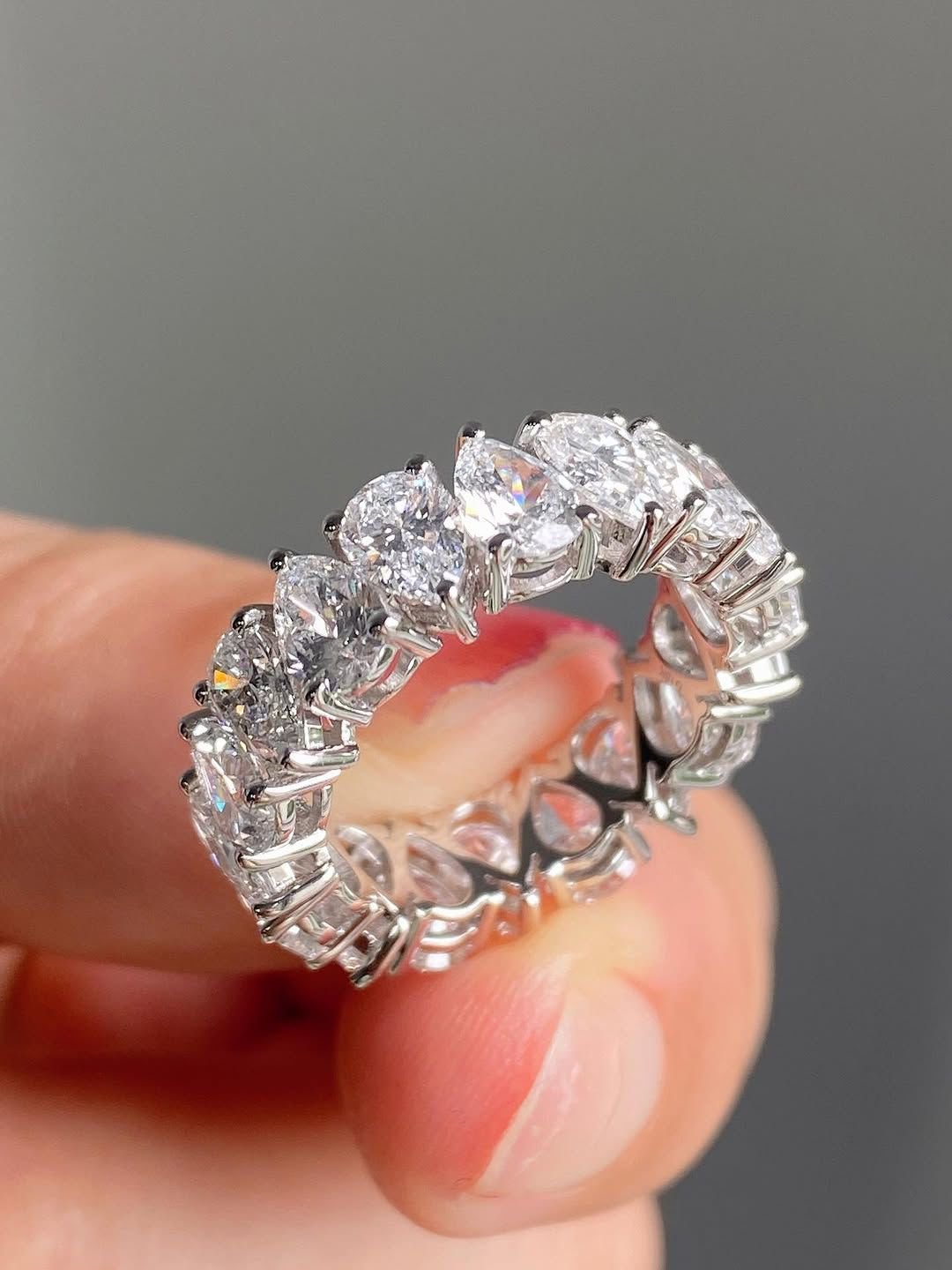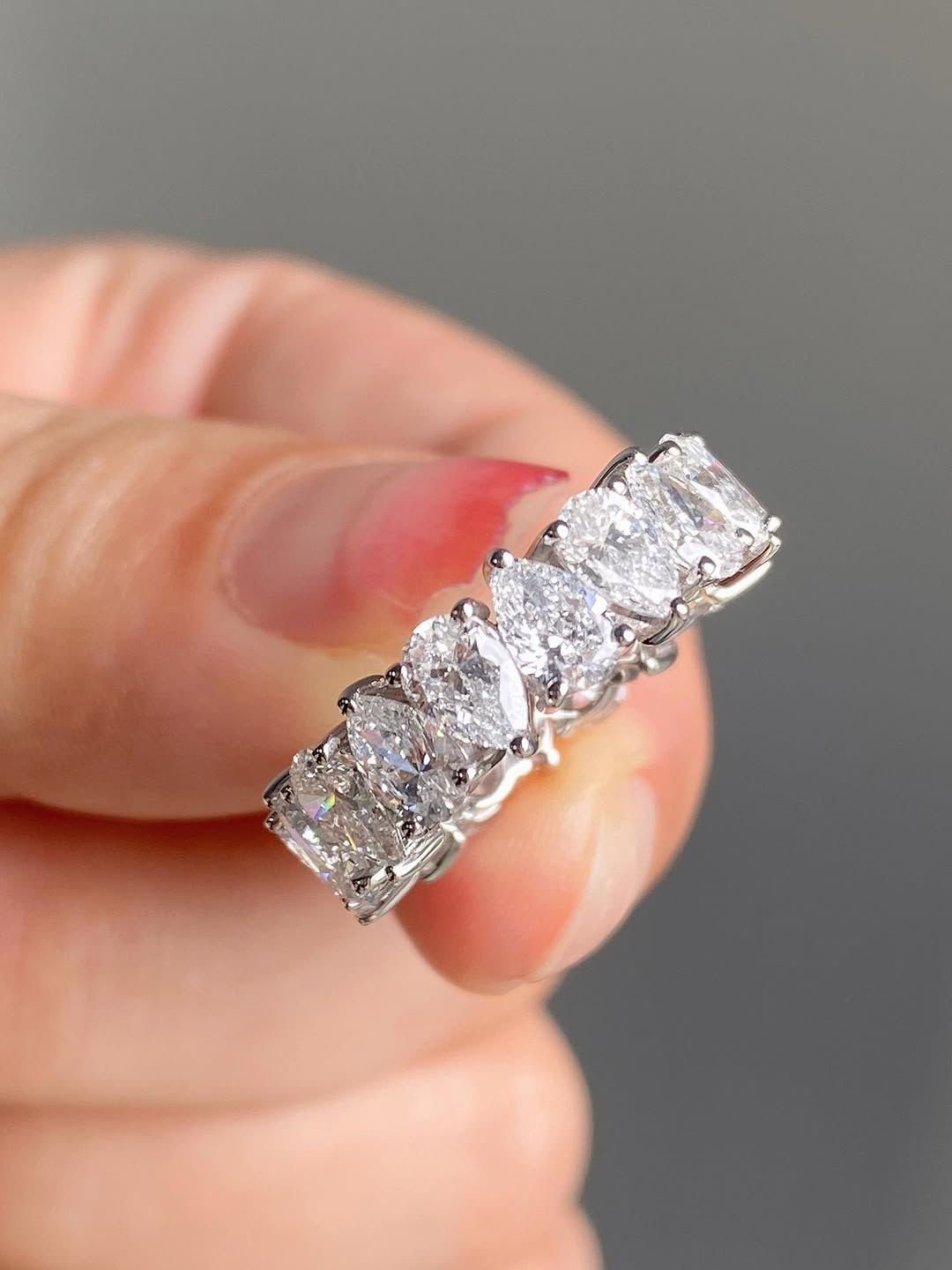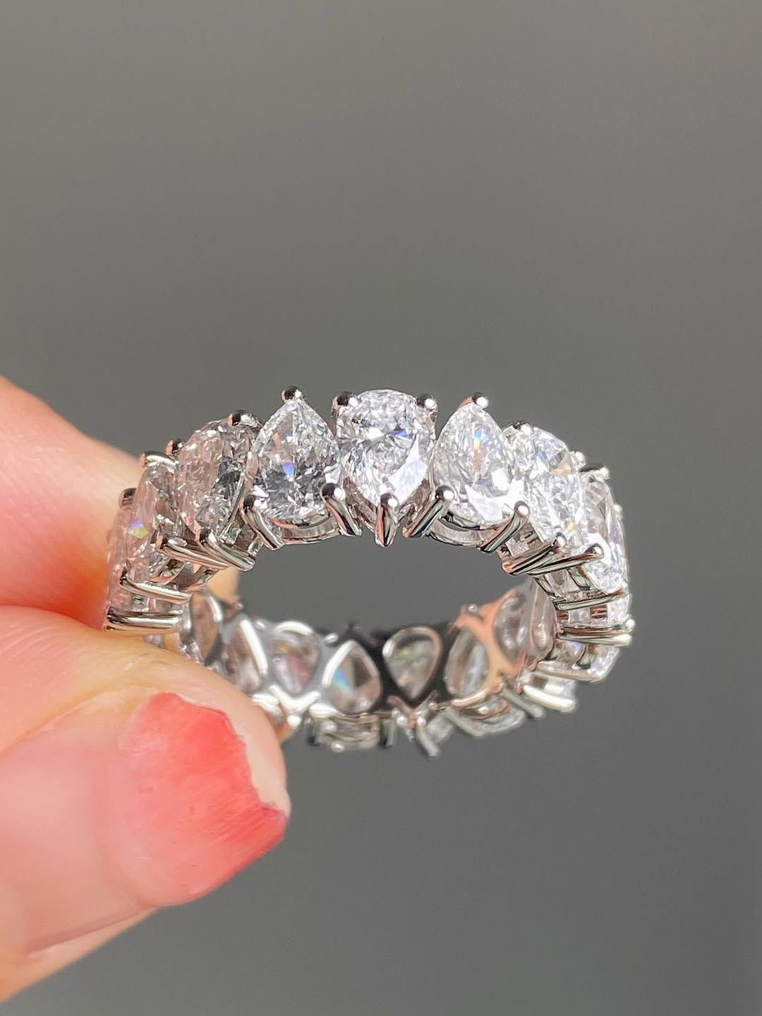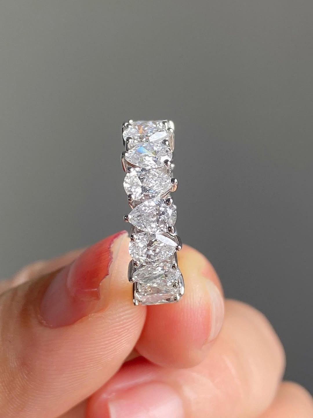 Pear Cut Diamond Eternity Band in White Gold In 10K 14K 18K – Luxury Wedding Ring, Brilliant Multi Shape Diamond Anniversary Band for Women