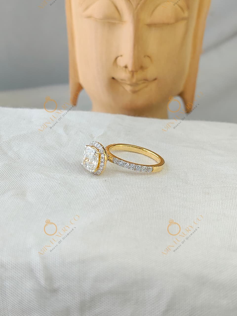 Premium Cushion Cut Diamond Ring for Women in Yellow Gold Elegant Engagement Wedding Anniversary Cushion Diamond Fine Jewelry