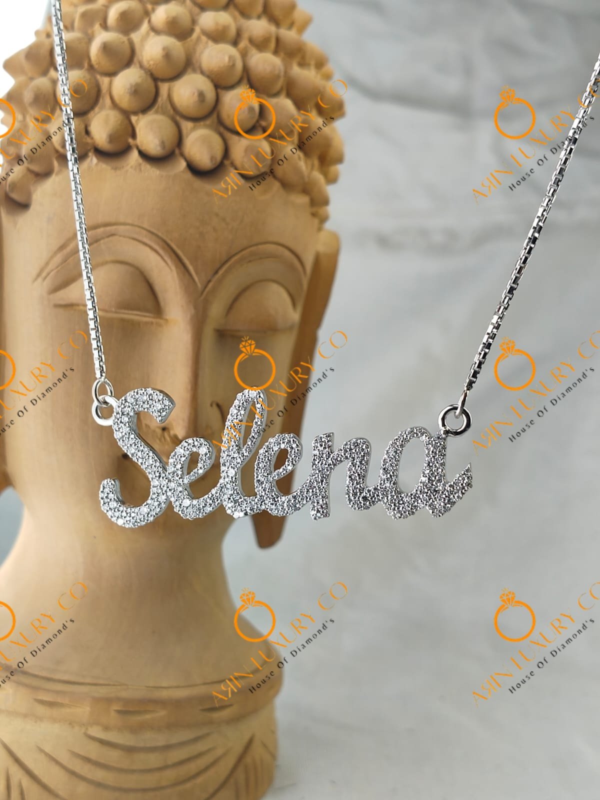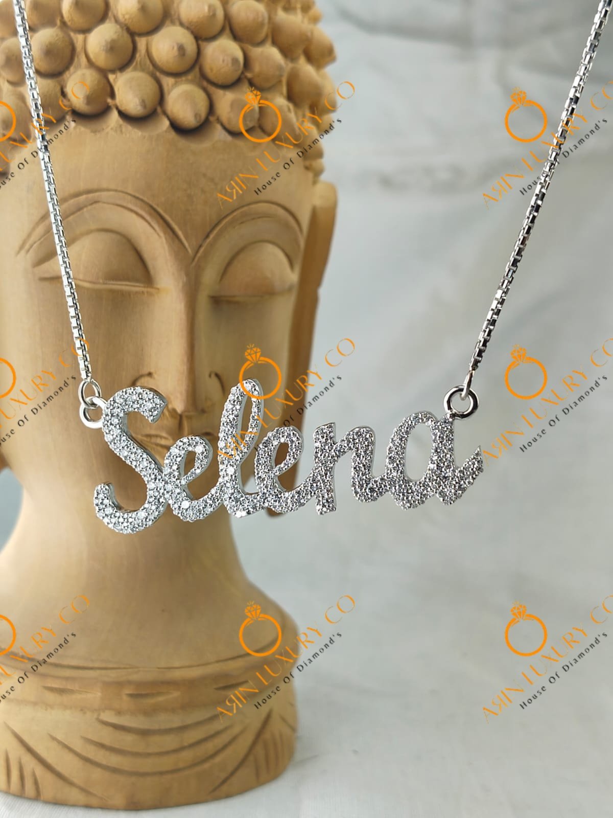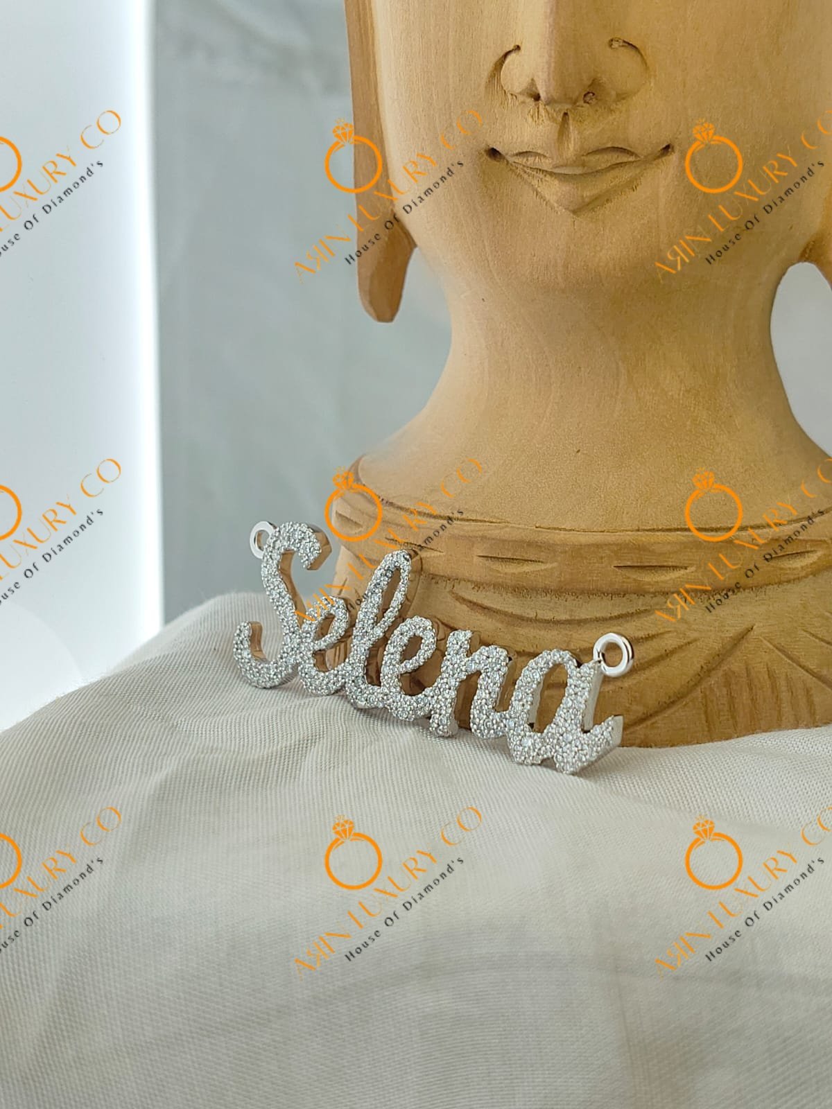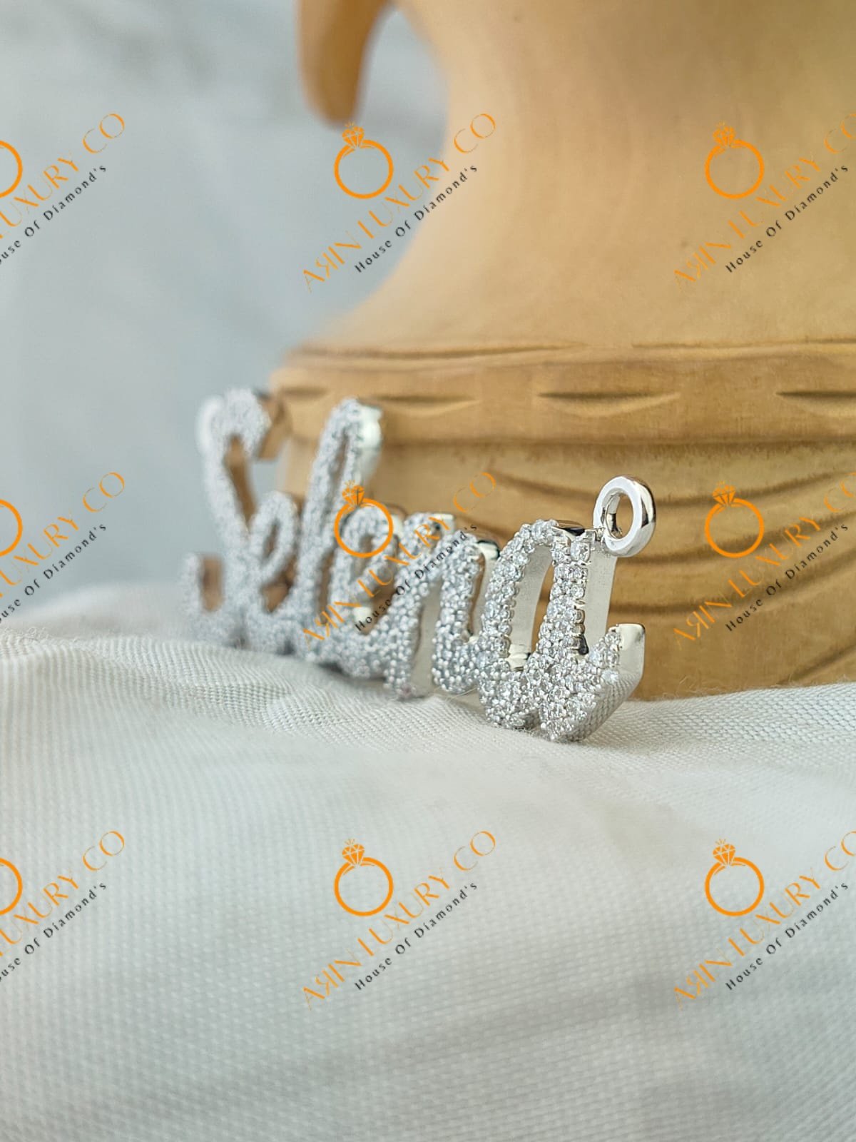 Round Brilliant Cut Diamond Custom Name Pendant in 18K White Gold – Luxury Personalized Jewelry Edition