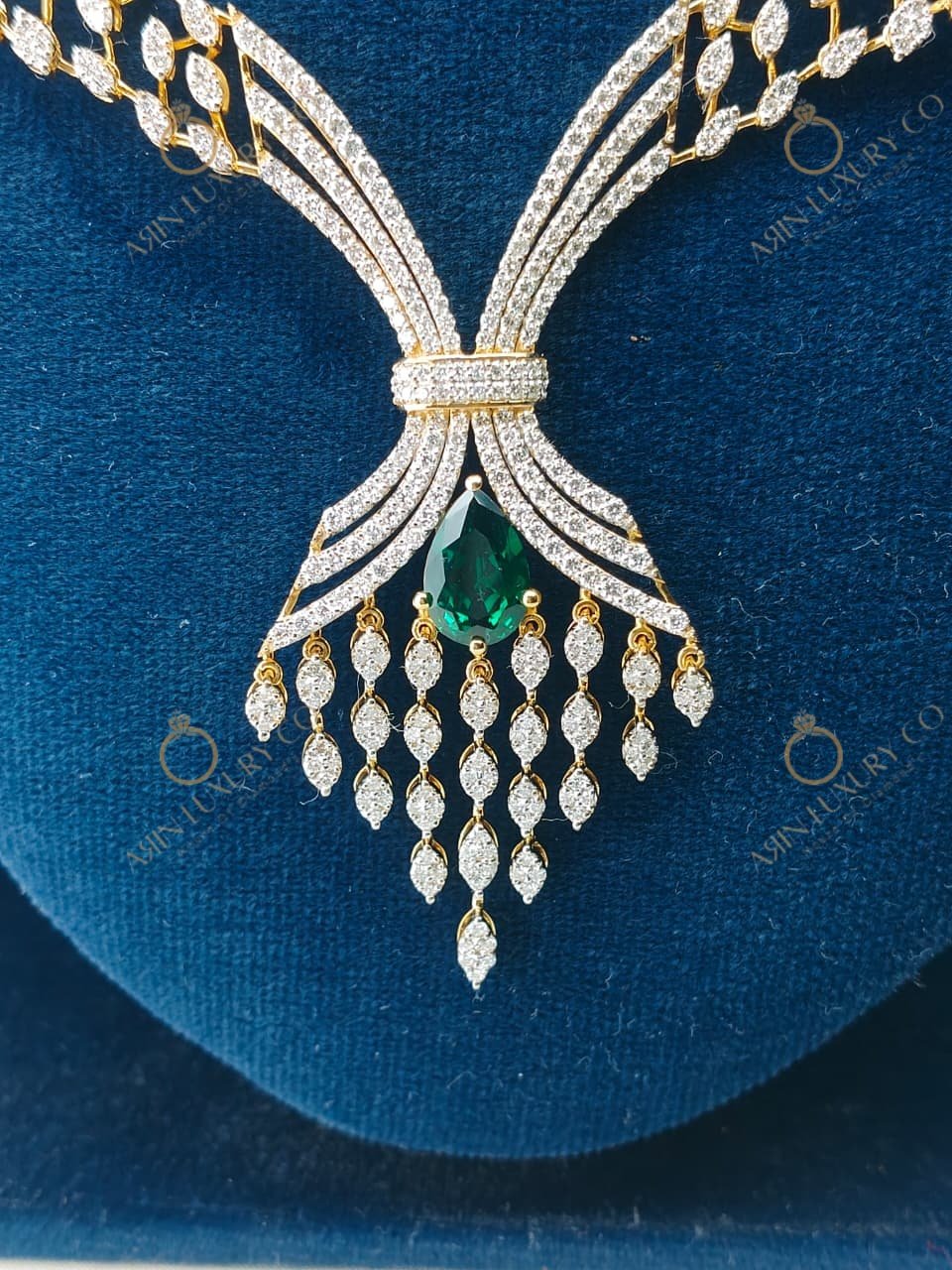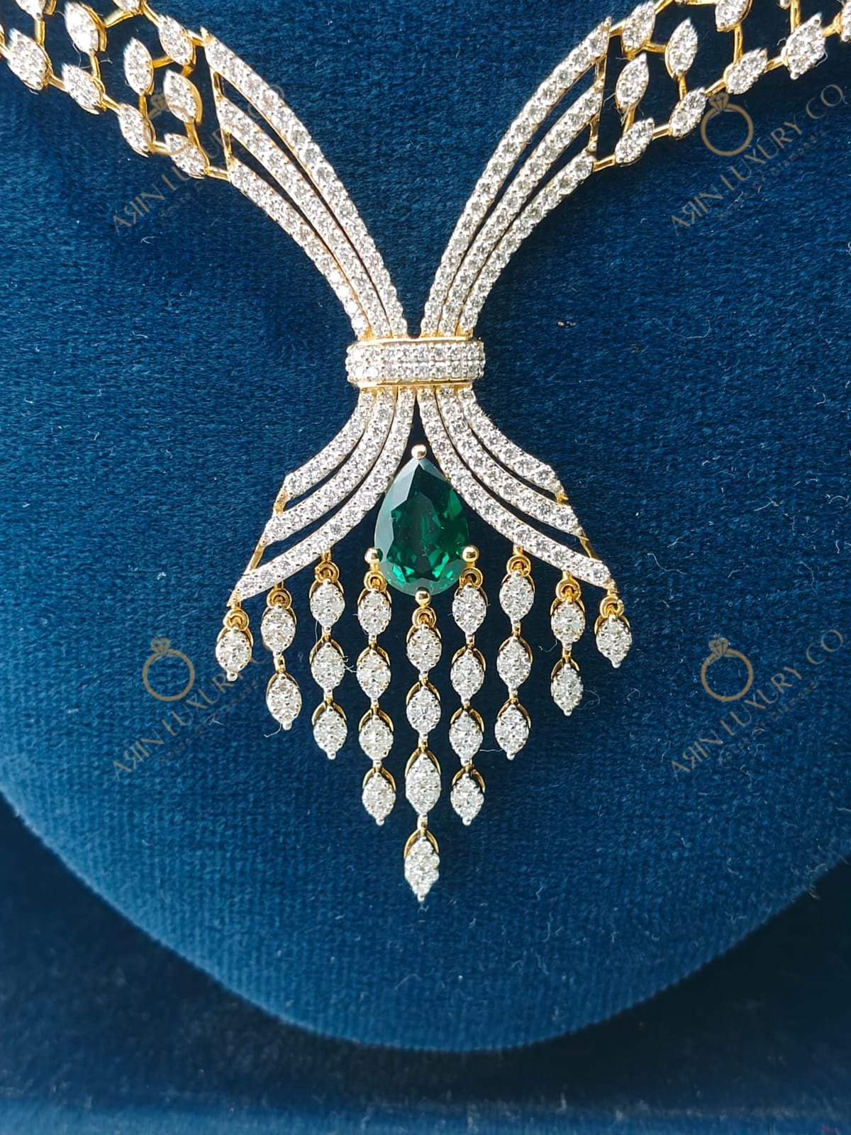 Be the first to review “Round Shape Side Diamond & Pear Cut Green Diamond Necklace Elegant White Gold Halo Pendant with Sparkling Side Diamonds Luxury Bridal & Party Wear Jewelry Gift for Women”