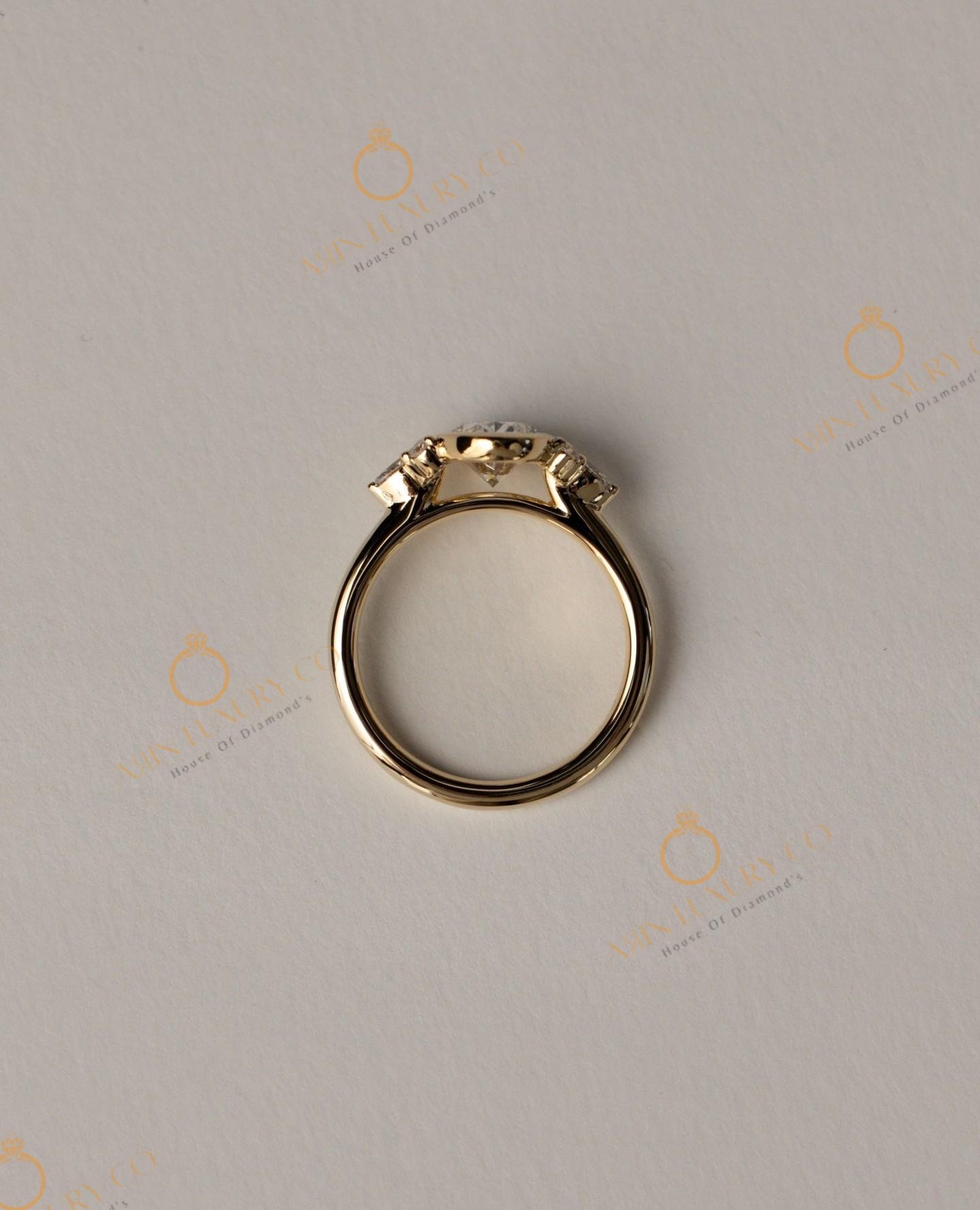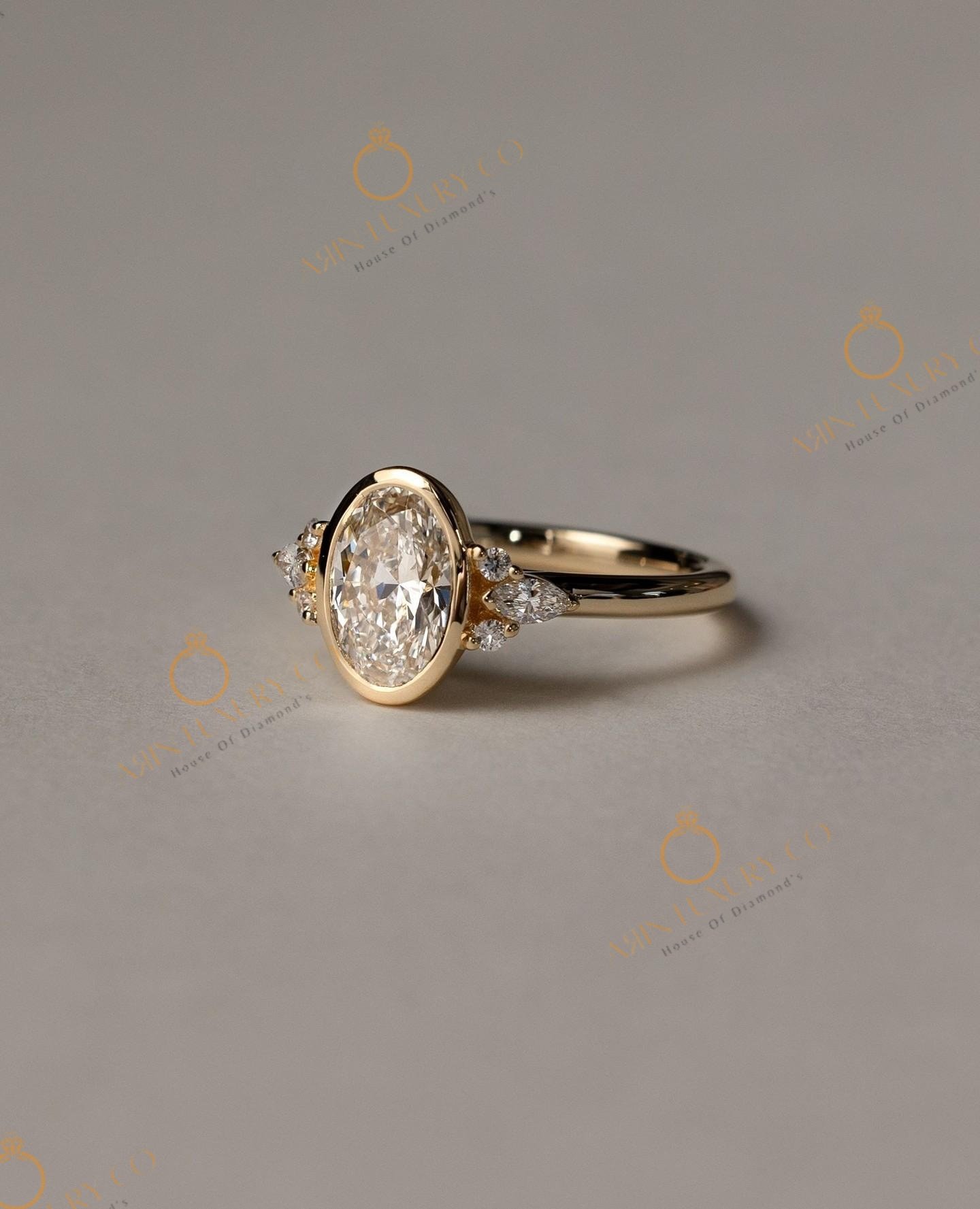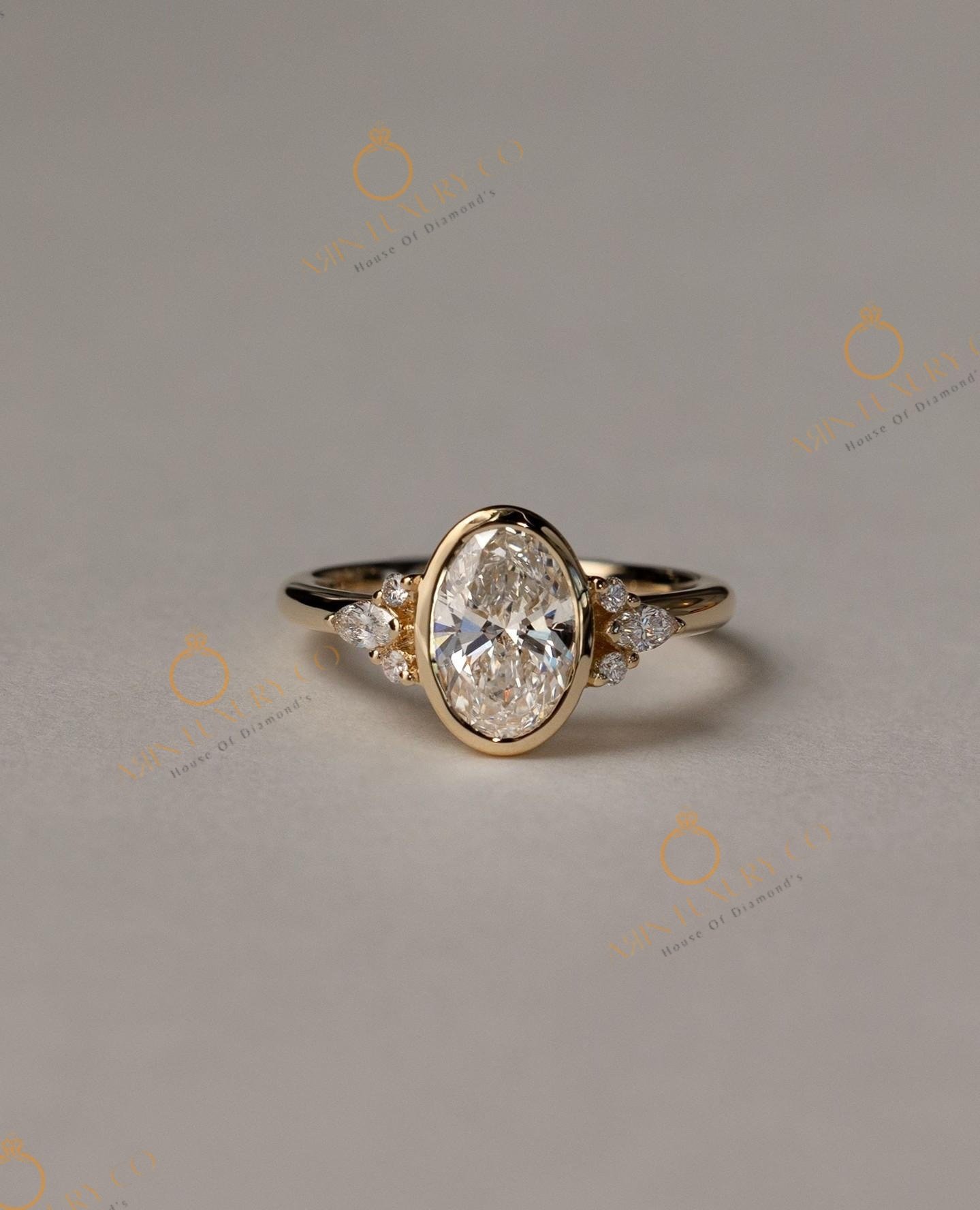Solid Yellow Gold Lab Grown Oval Shape Diamond Ring & Bezal Setting Type For Women’s To Were In Engagement, Party ,Wedding, Gifts For Her