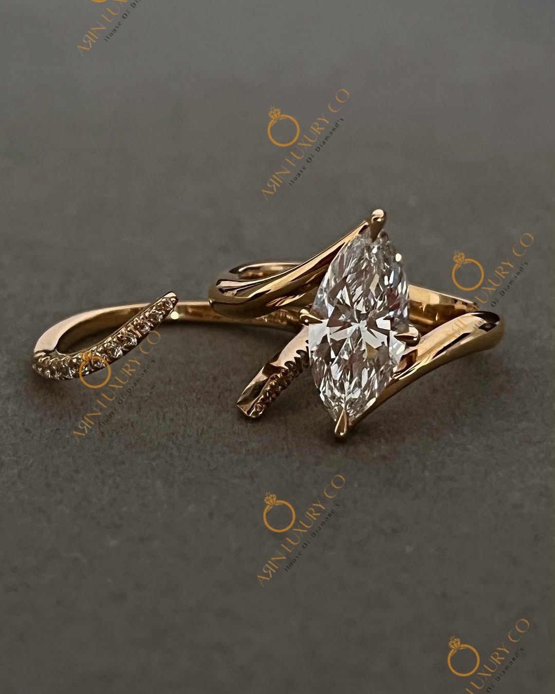 Be the first to review “Stunning Marquise Solitaire with Contoured Diamond Guard In 10K 14K 18K | Gold Bypass Bridal Set | Marquise Diamond Nesting Ring | Arin Luxury Designs”